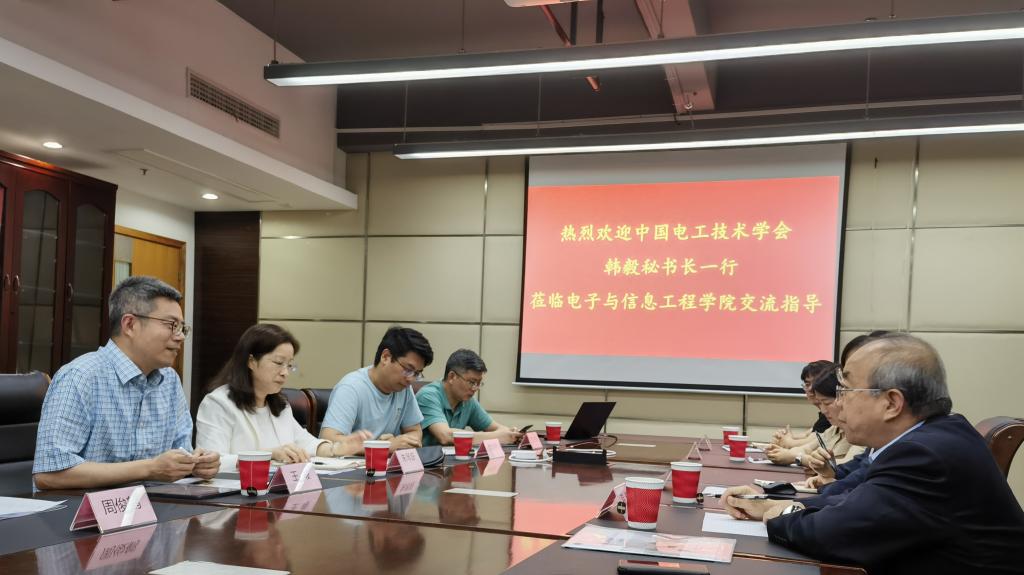 6月3日下午,中国电工技术学会秘书长韩毅、学术部主任孙于来我院进行交流指导,进一步深化学校学会间合作与交流,充分发挥双方优势资源,共同推进校会合作走深走实,服务科技创新与人才培养。学院党委书记王峻接待韩毅秘书长一行,党委副书记朱琴跃,副院长周俊鹤、黄新林,电气系主任沈小军、信通系主任王超以及系负责老师参加交流活动。