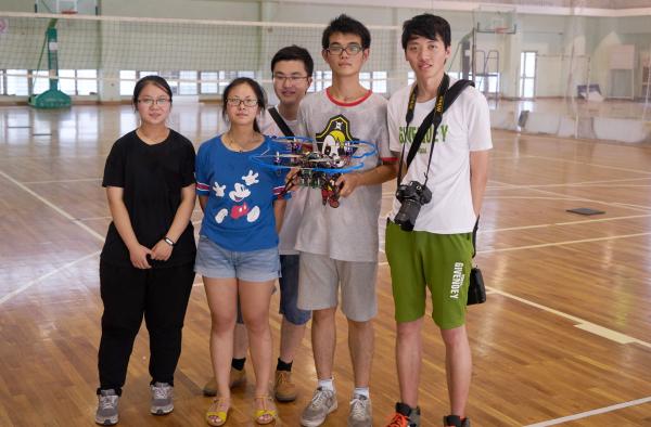 获得一等奖的陈曦、钱城晖、黄诗琪三名同学分别来自我院自动化、电气工程及中意学院电子信息与技术专业,在创新基地蒋磊老师的指导下,经过数月的训练准备,完成了基于机器视觉的自主导航四旋翼无人机。该无人机能够自主识别摄像机视野中的图形地标,自主规划飞行线路,完成竞赛规定的飞行动作。本作品采用Intel高性能处理器为计算核心,运用机器视觉算法识别的视野图像中的地标形状,并结合机载惯性导航模块规划飞行线路;无人机飞行姿态控制模块为基于TI高性能微控制器自主开发的软硬件部件,能够采集融合多种传感器信号,实现了稳定的飞行姿态控制。(蒋磊)