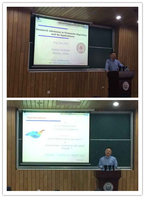 10月24日,应我院汪镭教授邀请,国际期刊IJCPR主编、IEEE Transactions on Cybernetics副主编北京大学谭英教授来到嘉定校区,在智信馆117报告厅作了题为“新型烟花算法研究及其最新进展”的学术报告。