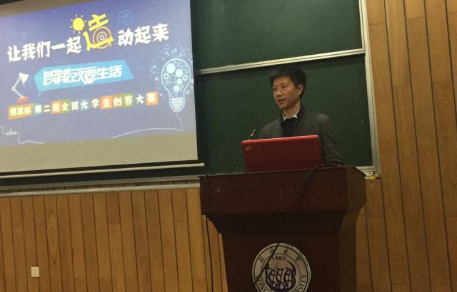 王正山先生紧接着介绍了大赛的命题与案例,引用了首届“博耳杯”创客大赛中的获奖作品以及智能家居等案例,详细说明了大赛的命题要求,期望同学们能够踊跃参赛。