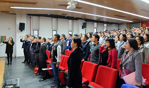 会议在嘹亮的国歌声中拉开序幕。其后,由我院党委副书记向阳同志作《金沙检测线路js95砥砺奋进的五年》的报告,报告总结了党的十八大以来金沙检测线路js95五年间所做的主要工作以及在全院师生共同努力下所取得的成绩和进步。随后,交通银行上海杨浦支行行长陈德同志以交通银行基层党组织建设为内容,与学院师生党员分享了党组织建设经验,令大家有耳目一新的感觉。